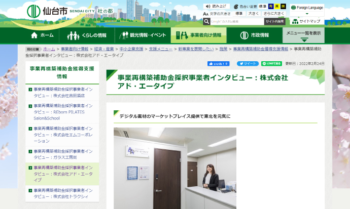 仙台市経済局より、事業再構築補助金を活用した新事業についてのインタビューを受け、今回そのインタビュー記事が仙台市ホームページに掲載されました。