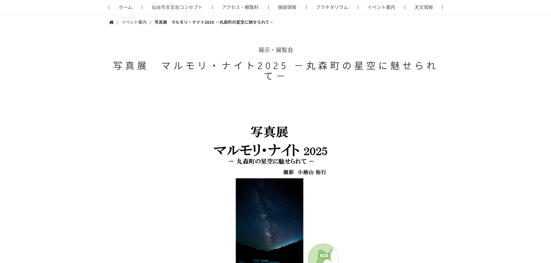 仙台市天文台 写真展 マルモリ・ナイト2025-丸森町の星空に魅せられて-