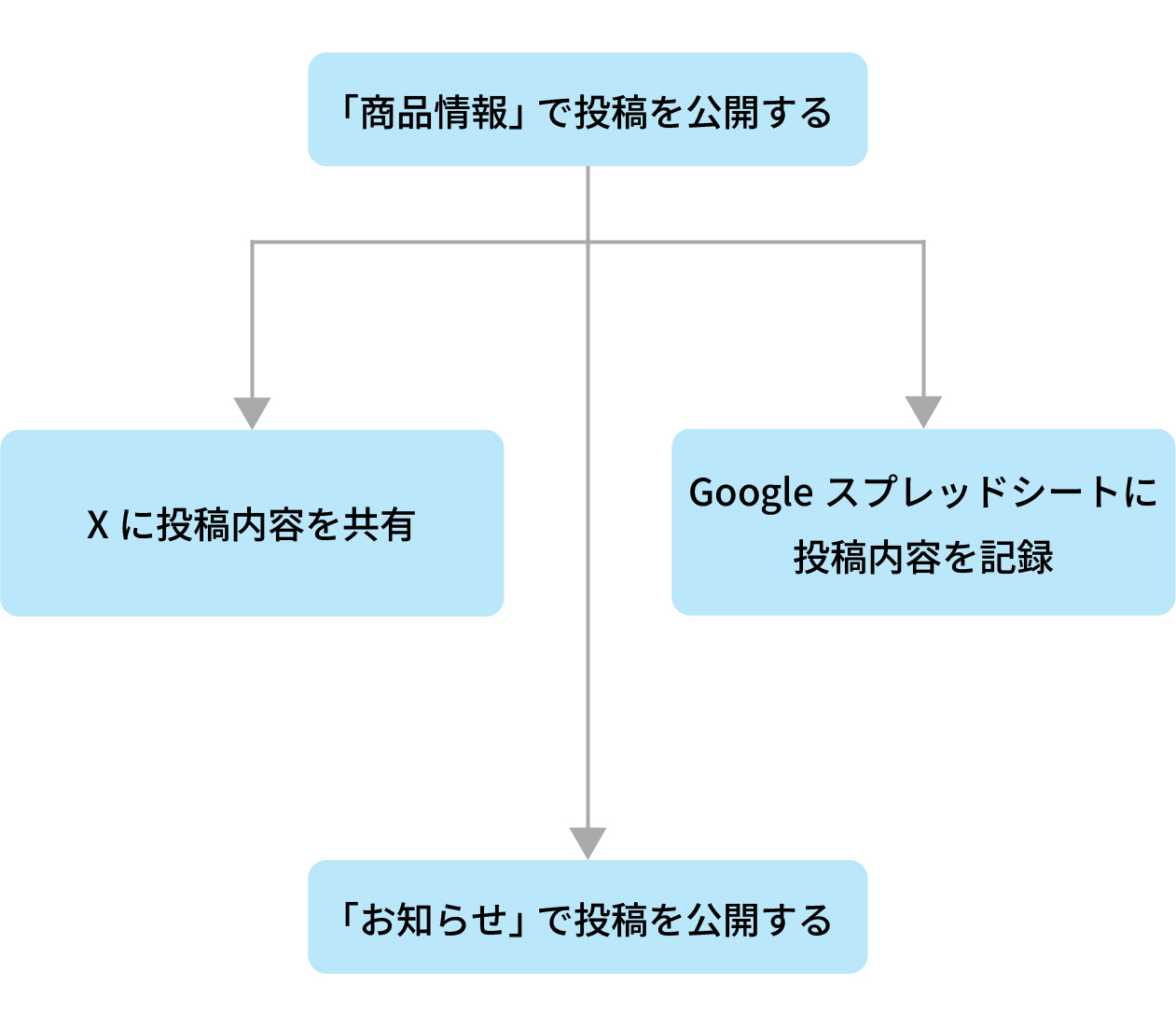 • ・投稿A(例:商品情報)に投稿をしたら、投稿B(例:お知らせ)にその内容を投稿