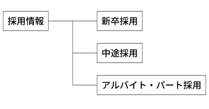 Googleしごと検索に求人情報を適切に掲載するためには、サイト構成も重要な要素のひとつです。求職者にとって情報が整理されていて見やすく、Googleが情報を正しく認識できる構成が求められます。以下のような分類でページを構成すると、構造化データとの整合性も取りやすく、掲載につながりやすくなります。