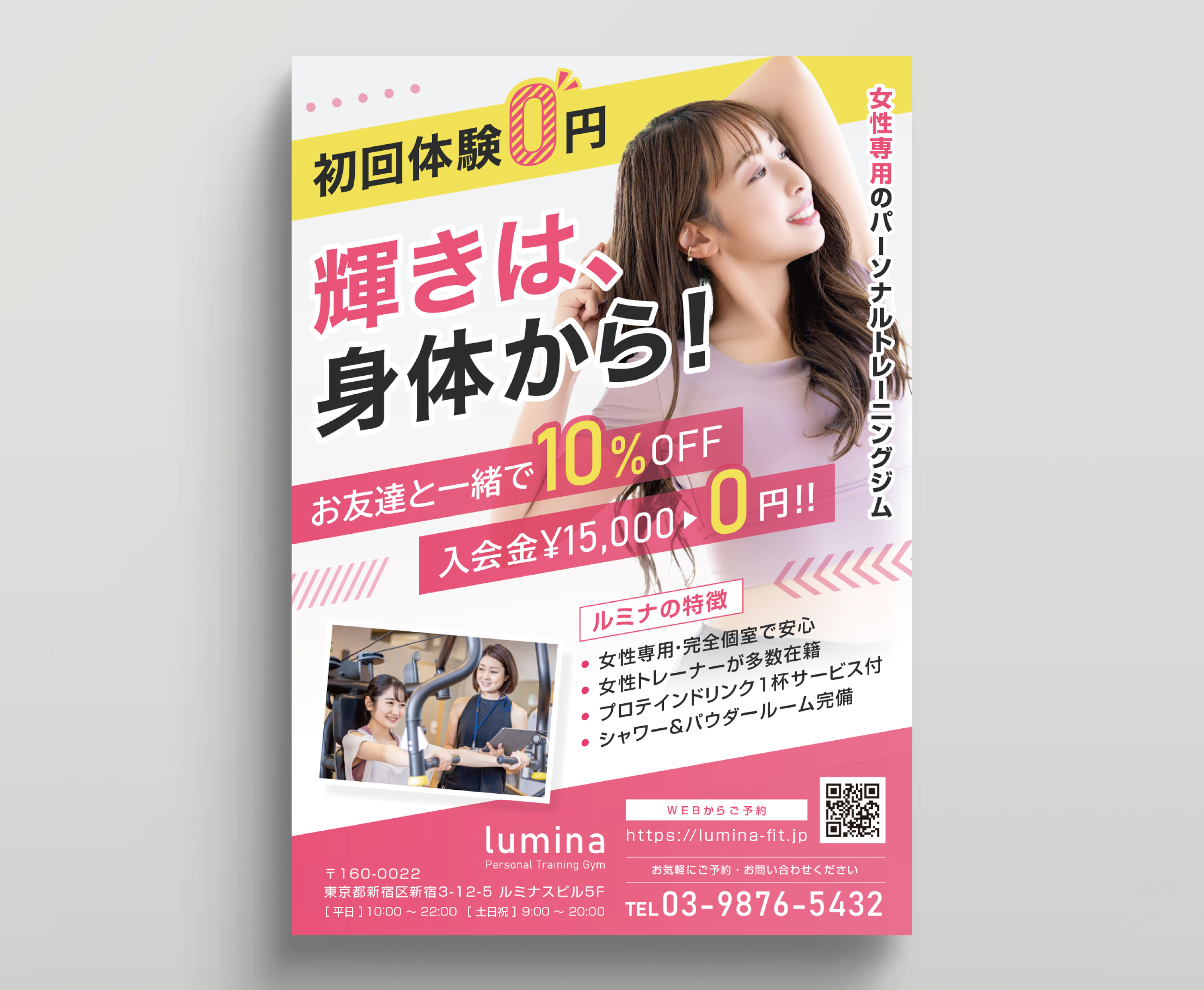 女性専用パーソナルトレーニングジム(lumina)様の集客販促として、ポスティングを想定したフライヤーを制作しました。