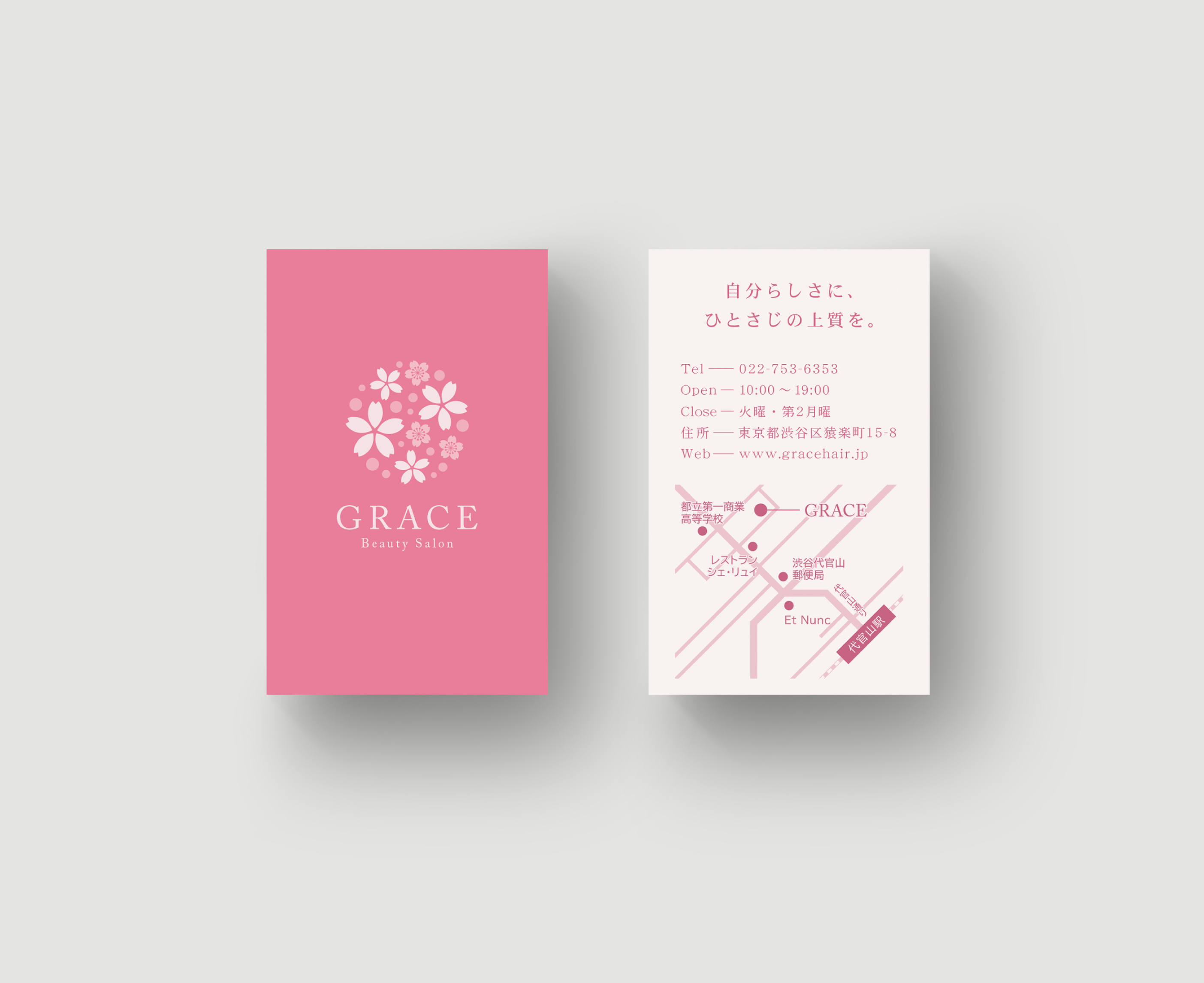 心地よいサロン体験が名刺から始まるような、品のあるブランディングを目指して制作しました。