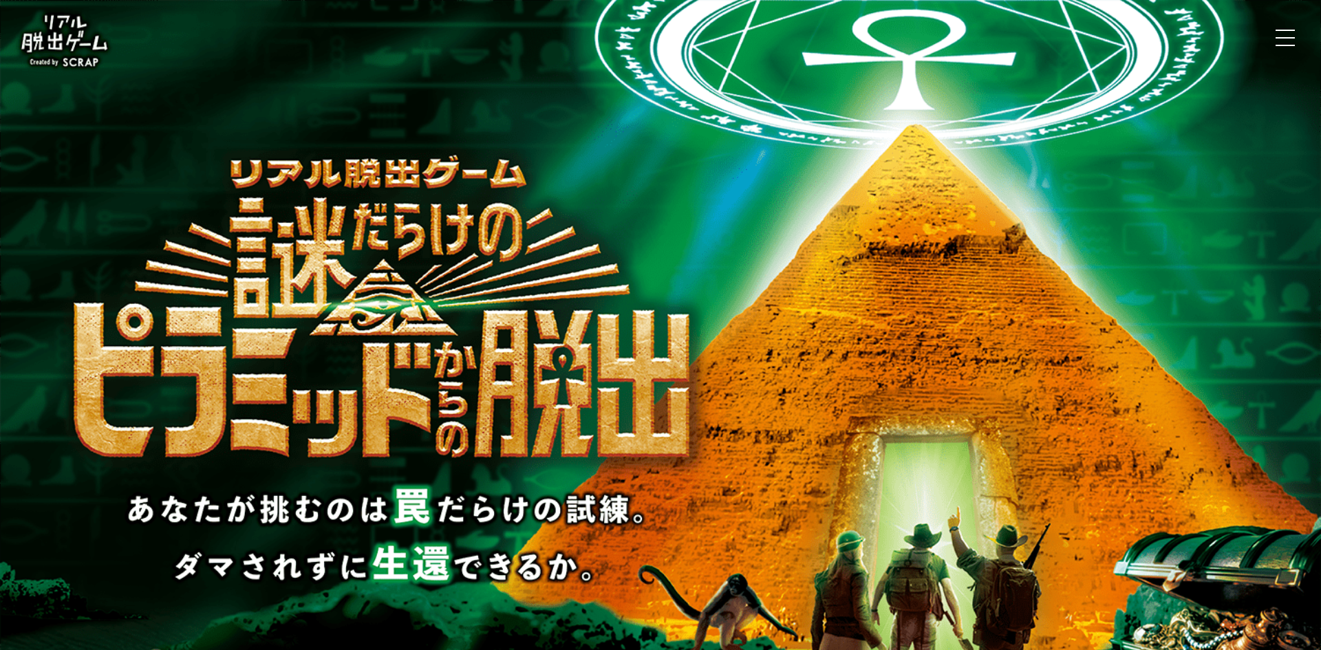 ・所要時間120分で謎を解き、ピラミッドから脱出を目指す体験型ゲームイベント
