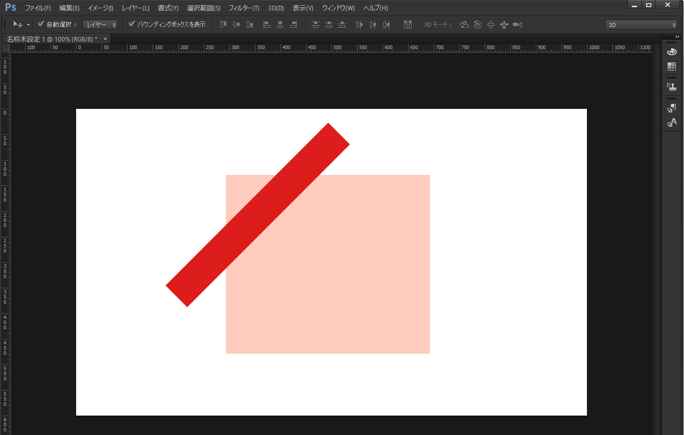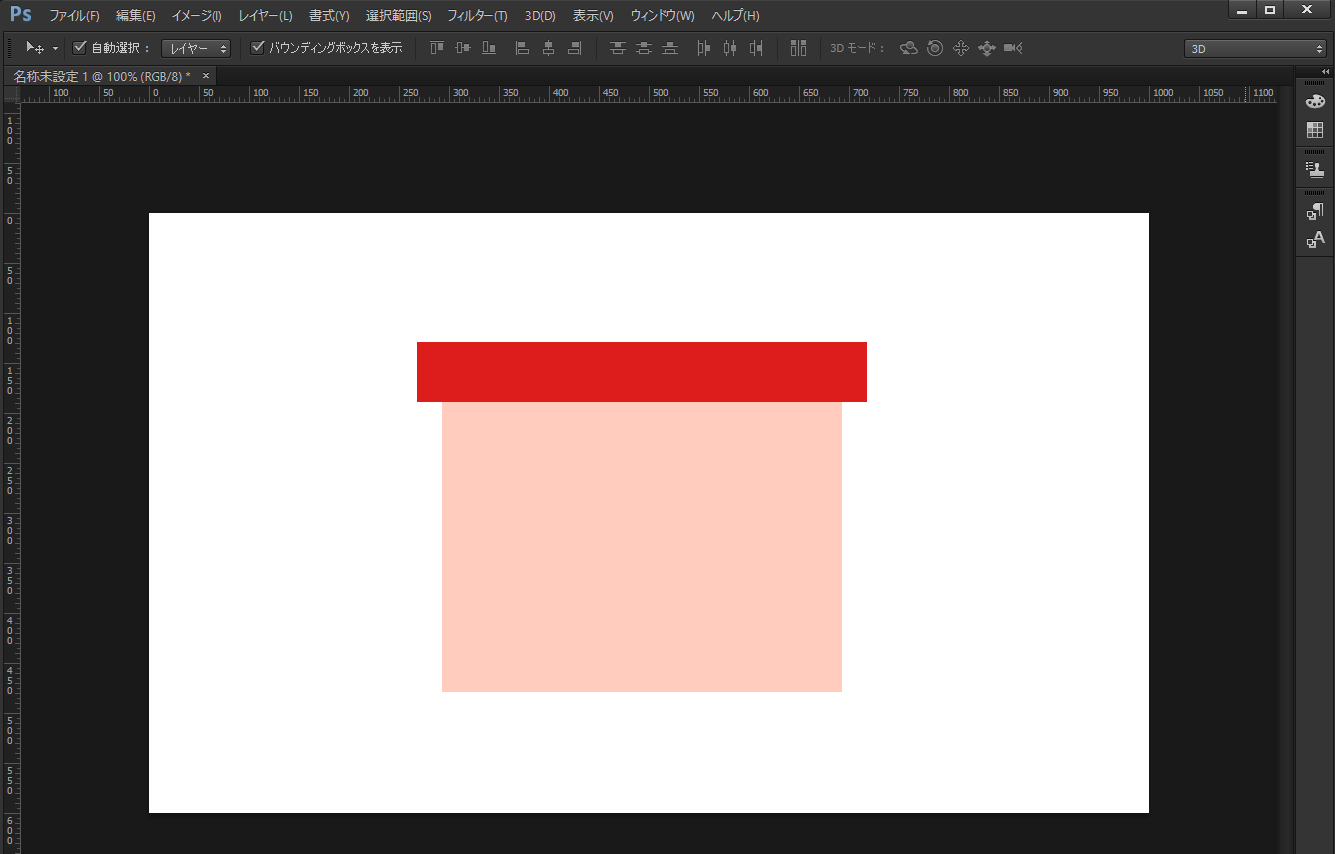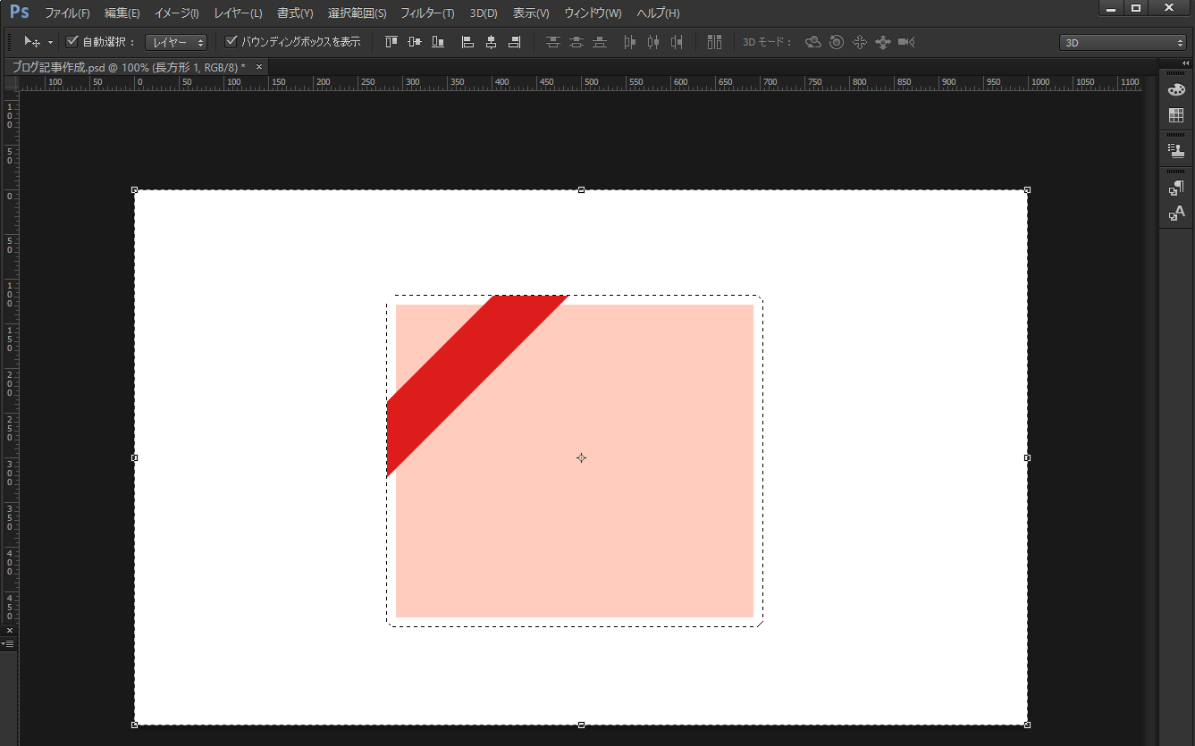 長方形ツールで長方形を二つ、一つはリボンをのせるオブジェクトを、もう一つはリボンの元となるものを作ります。リボンの元は、オブジェクトより長めに作ります。
