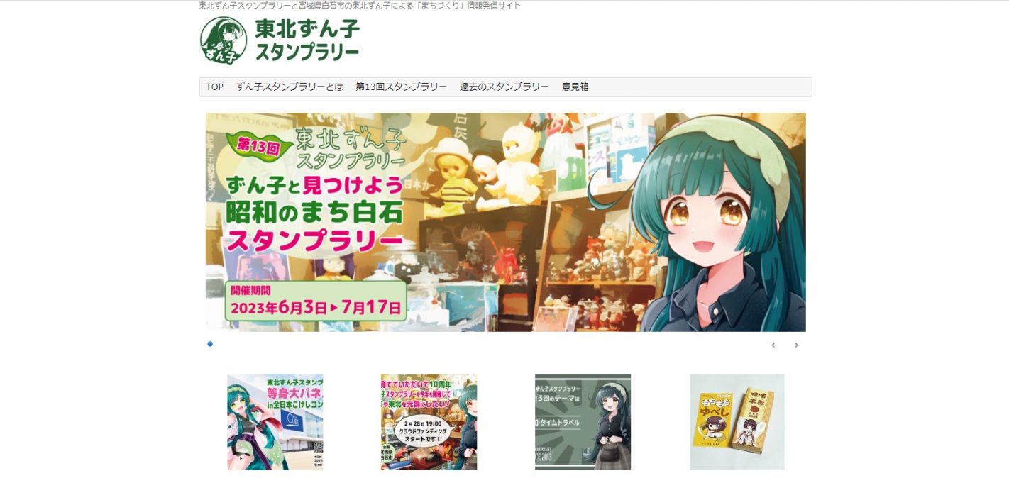 今年で10周年を迎える東北ずん子スタンプラリー。今回のテーマは「昭和・タイムトラベル」です。スタンプ設置店には等身大パネルも展示され、いろんな方が描かれたずん子ちゃんを見ることができます。今年も白石・宮城・東北を盛り上げ、ますます元気にしてくれることでしょう。