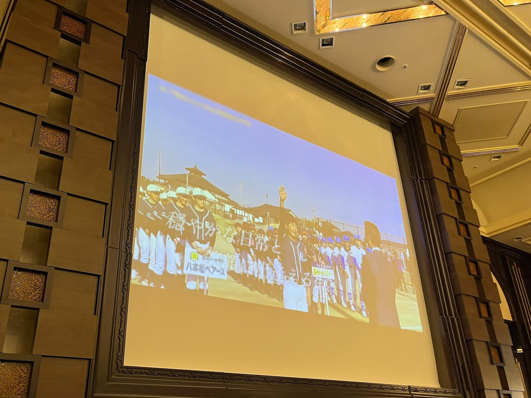 約5分間の佐々木幸士県議の軌跡を描いた映像を流しました。