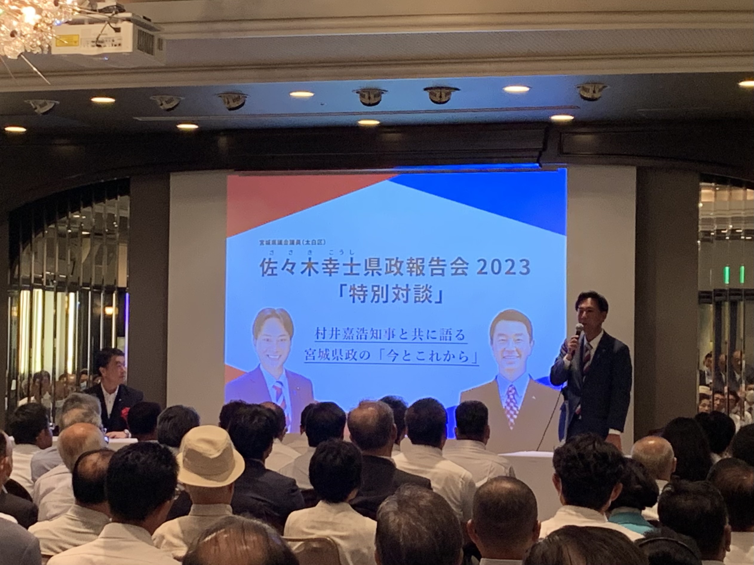 佐々木幸士宮城県議会議員と村井嘉浩宮城県知事の特別対談が行われました。
