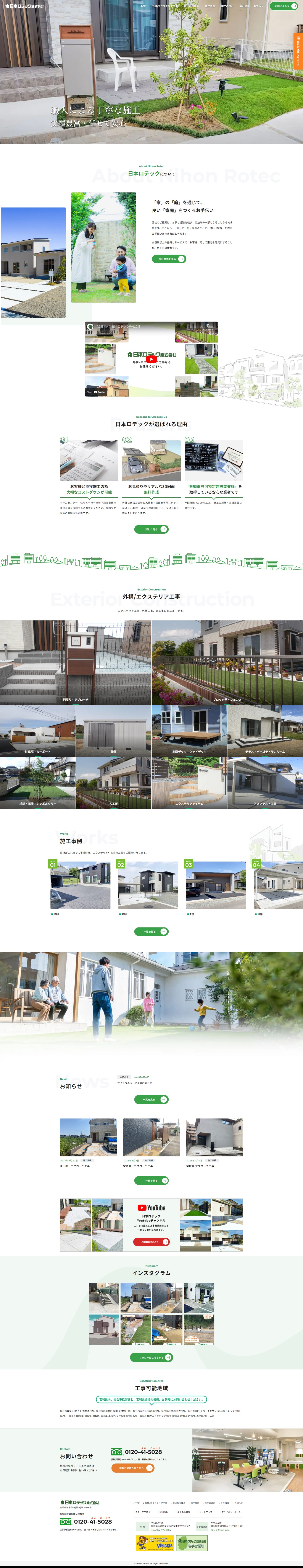 URL https://nihonrotec.jp/ サービス内容 デザイン ディレクション WordPress 映像制作 日本ロテック株式会社のオフィシャルサイトです。東北を中心に外構・エクステリア工事を行っています。