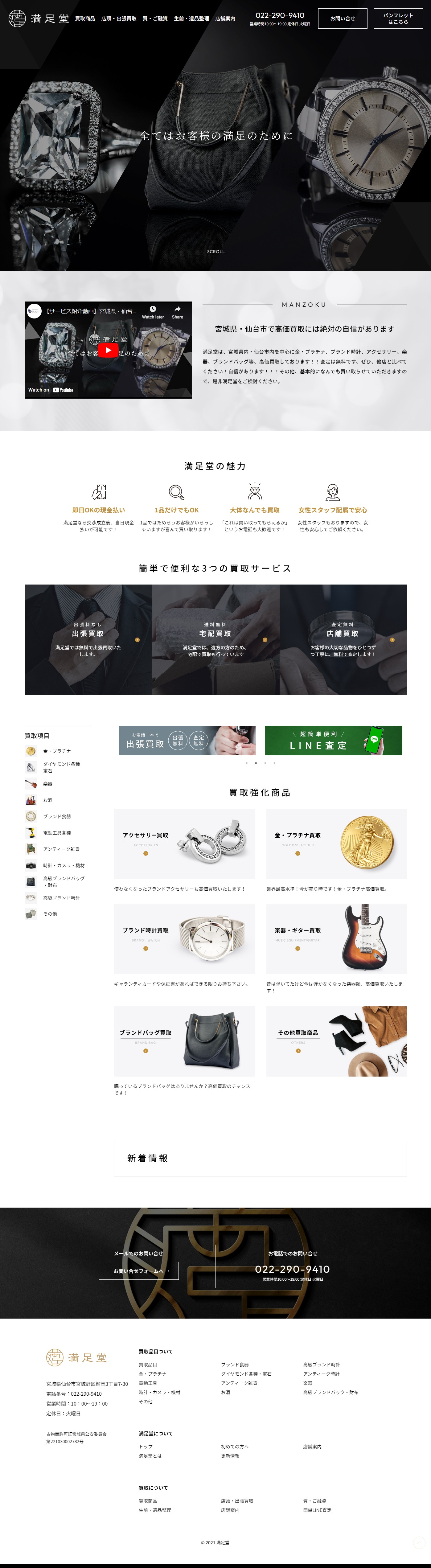 URL https://manzokudo.net/ サービス内容 デザイン ディレクション サーバーホスティング サイト管理 宮城県仙台市にある買取専門のエコリサイクルショップ、満足堂様のWEBサイトです。買取専門であること、LINE査定ができることをしっかり伝えるサイト構成で、お問い合わせアップにつなげています。