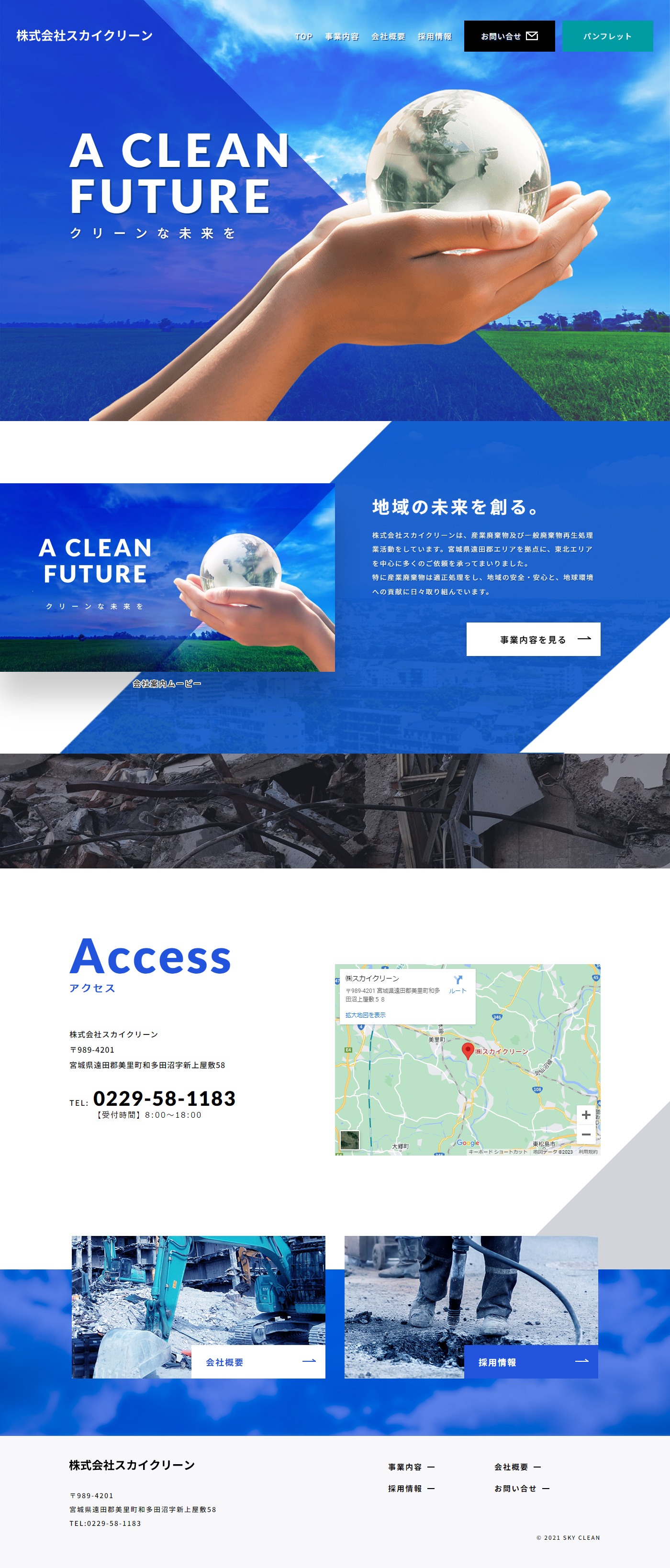 URL https://sky-clean.co.jp/ サービス内容 デザイン ディレクション サーバーホスティング サイト管理 株式会社スカイクリーン様は、産業廃棄物及び一般廃棄物再生処理業から土木事業に関する請負、設計、施工など多種多様に活動をしています。 特に産業廃棄物は適正処理をし、地域の安全・安心と、地球環境への貢献に日々取り組んでいます。