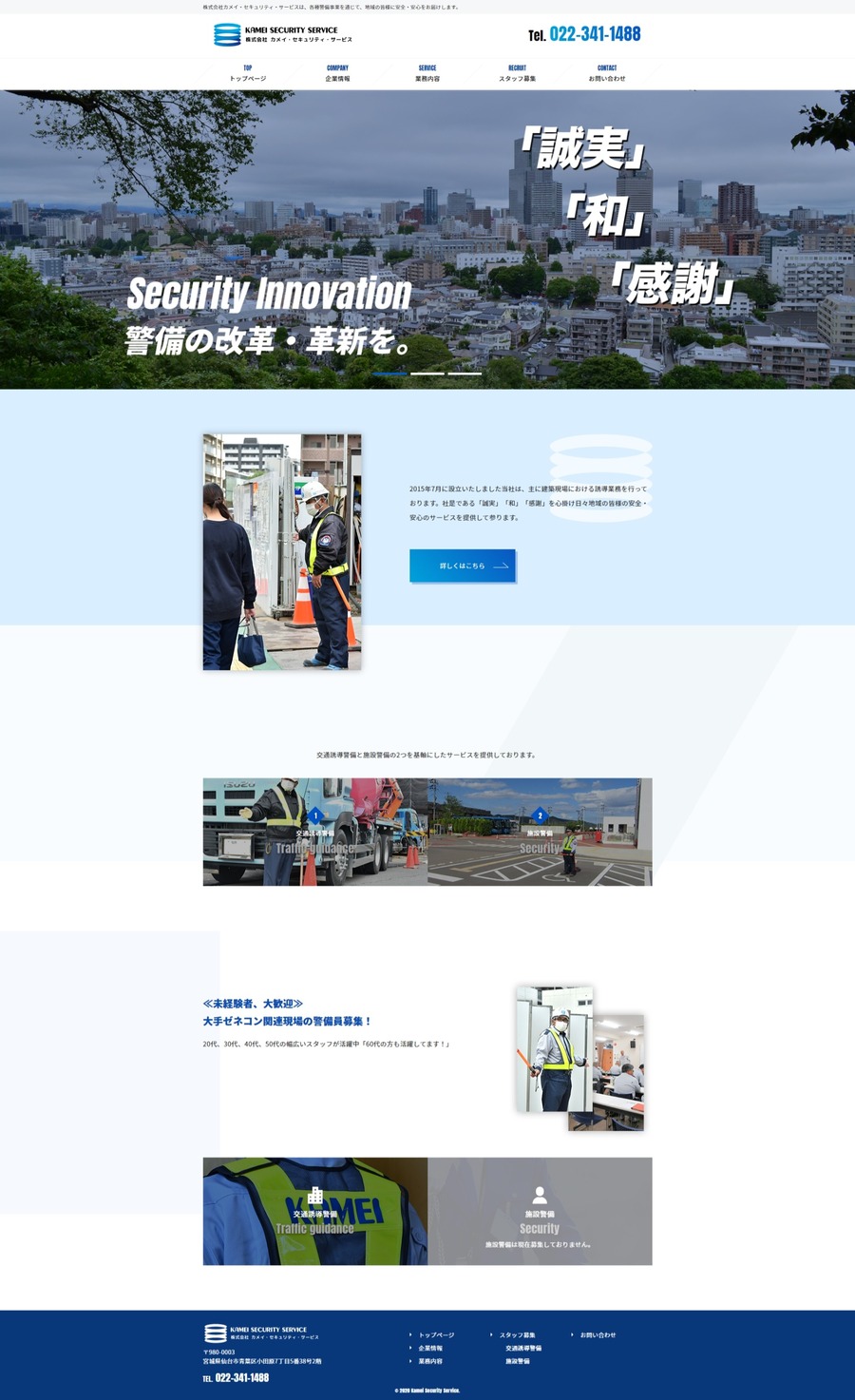 URL https://www.kamei-security.com/ サービス内容 デザイン ディレクション システム開発 サーバーホスティング サイト管理 宮城県の警備会社、株式会社カメイ・セキュリティ・サービス様のWebサイトです。新規Webサイトのご相談から承りまして掲載写真などは実際の業務の様子がつたわるようにご準備をいただき各ページで使用いたしました。警備の採用情報を載せておりますので随時募集状況が確認できるようにしております。