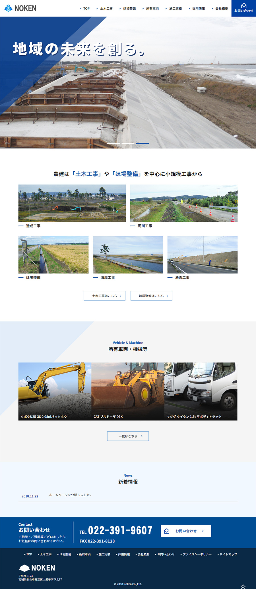 URL https://www.noken-ss.co.jp/ サービス内容 サイト管理 農建様は「土木工事」や「ほ場整備」など一般土木工事業を行っている会社です。WEBサイトでは、アクティブなイメージを伝えるために工事シーンを中心に数多くの実績を紹介しました。