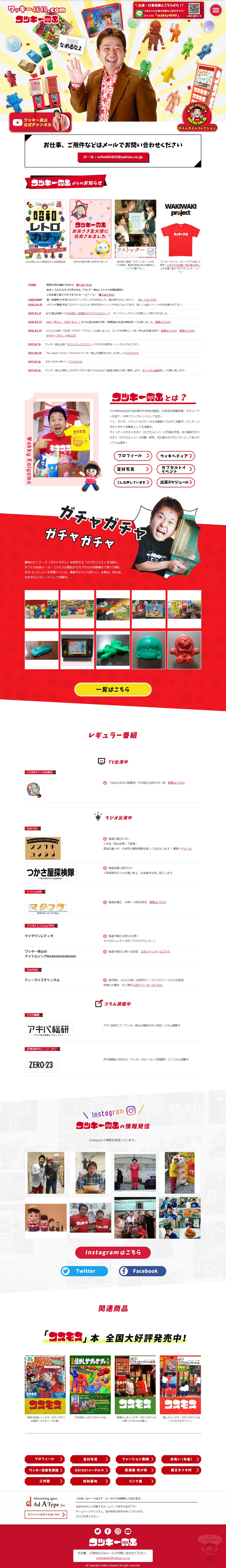 URL http://www.wakky4649.com/ サービス内容 デザイン サーバーホスティング 仙台市を中心に活躍するタレント、ワッキー貝山様のオフィシャルサイトです。ガチャガチャなどワッキーさんの特徴をアピールできるよう制作しました。