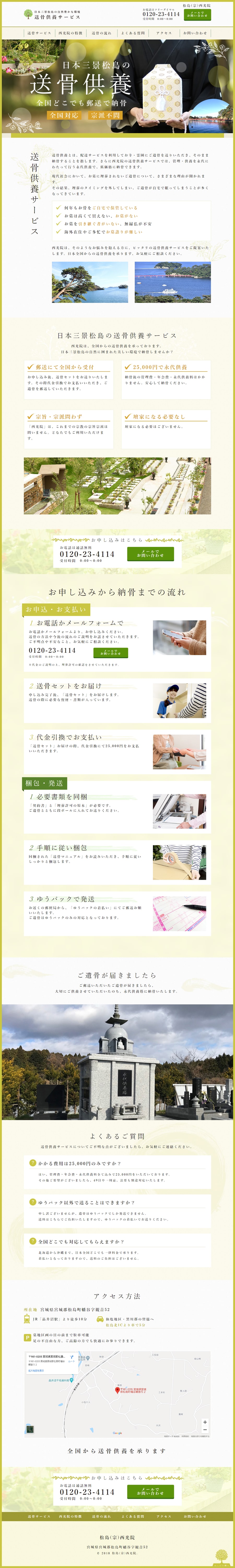 URL https://memoire-rifu.com/lp2/ サービス内容 デザイン ディレクション 西光院様が執り行う送骨供養サービスのランディングページです。お申込みから郵送、納骨までの流れを分かりやすくデザイン。電話やメールでのお問い合わせにつなげています。